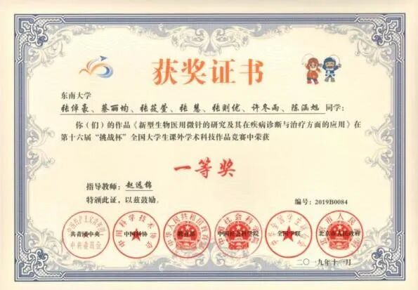 全国大学生课外学术科技作品竞赛国家级一等奖