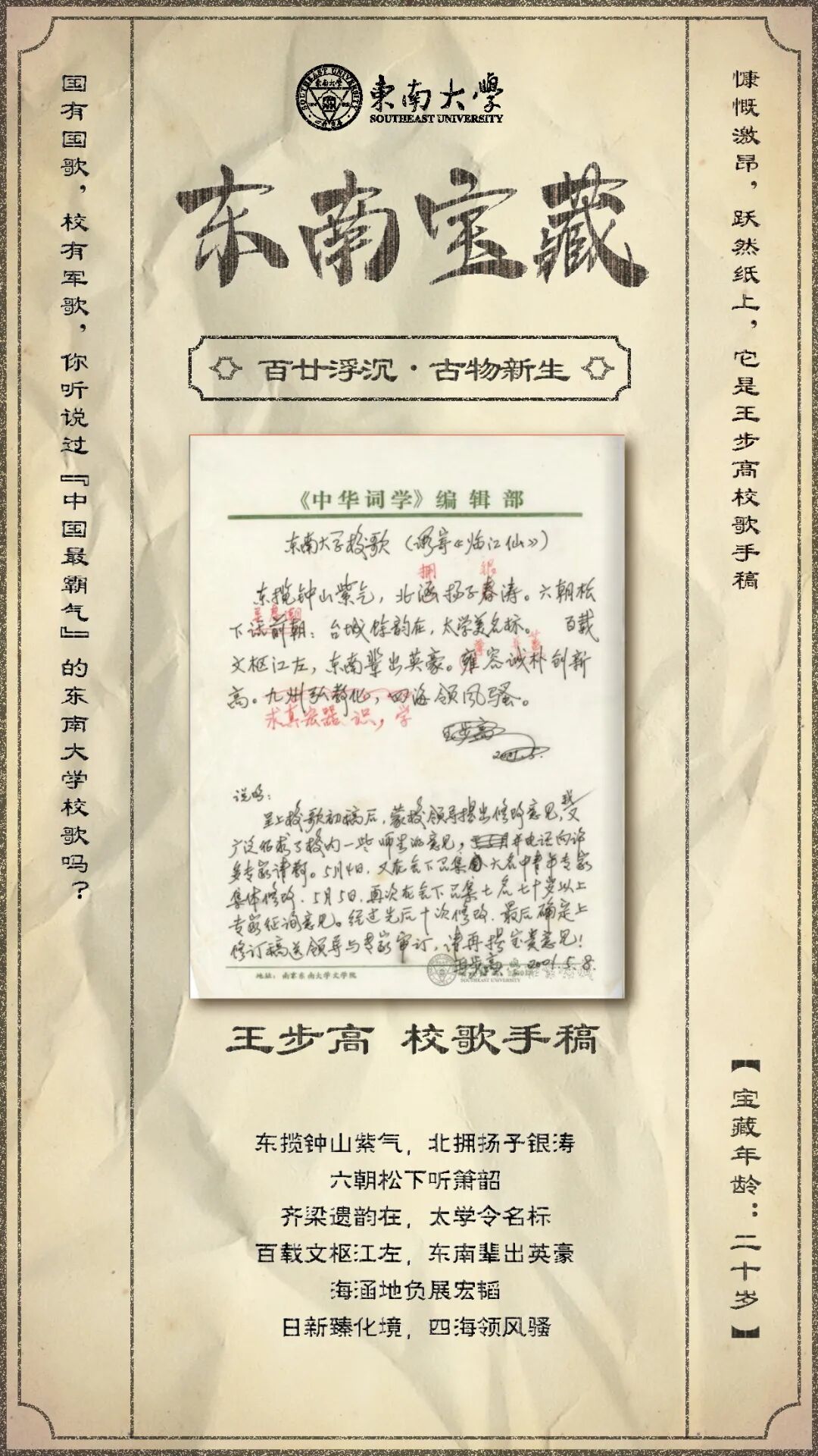 这首由王步高主笔的第四版东南大学校歌背后,究竟有怎样的魔力与故事。