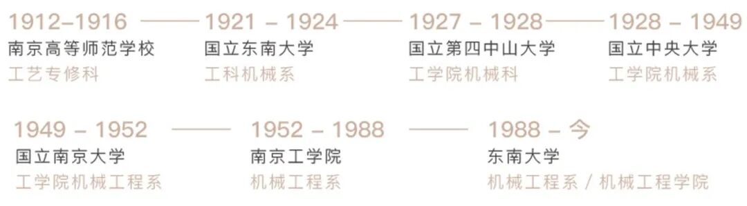 东南大学机械工程学院具有百年辉煌历史,学院始创于1916年南京高等师范学校工艺专修科,并于1928年成立国立中央大学机械系。建国后,于1952年成立南京工学院机械系,是新中国第一批机械工程本科专业。于2006年更名为东南大学机械工程学院。2022年,“机械工程”学科入选国家“双一流”学科建设名单。