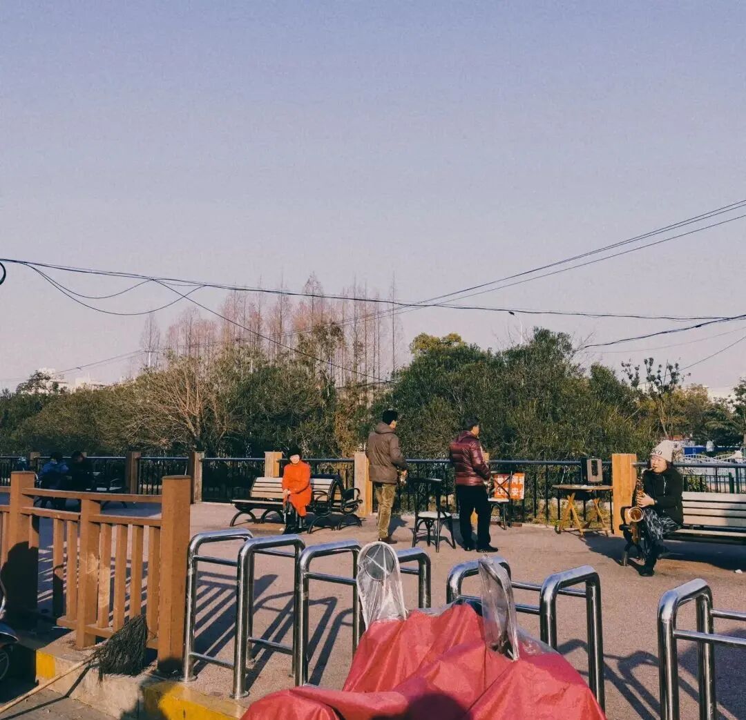 几位老师从天南海北走到了一起,人生的轨迹在上海乃至全国各地划出一道道人生的弧线,而在聚丰园路这里形成交点。刚到聚丰园路的时候,上海大学还没有建好,自然也没有沃尔玛超市,周围是绵延的田地,21世纪初,这片田地上生长起一簇簇楼宇,大学的建成伴随着小吃街的诞生,聚丰园路变得红火起来,逐渐成为今天河边黑街的这副模样。但城市的中心仍然在扩展,2021年12月,街角的沃尔玛超市在居民们的注视下被绿色的安全网层层围起,据说来年5月份,旧的沃尔玛将蜕变成山姆超市,对面的菜市场被改建成超市附属的停车场这一计划也被提上日程。聚丰园路某小区的老阿姨对此十分期待:“到了明年,我们想买什么都能买到了。”与此同时,菜市场的阿姨一边递给顾客三只咸鸭蛋,一边查看收付款记录,说:“这里的菜市场要是拆掉了,我们也不知道该去哪里了。”合唱团的成员们则从山姆超市开始追忆起曾经的聚丰园路,在几位老人的眼里,聚丰园路也在追求着城市街道的体面,曾经小商小贩沿街摆摊卖菜,马路上零散着菜叶子,碎鸡蛋,参与早市和夜市的人们发出嘈杂的声音,纷纷扰扰。后来,商贩店主们的气场在城市改建的声音中大打折扣,人们或陆陆续续地离开,不知去向何处,或走进菜市场争得一小片摊位,在高租金的逼近下忙碌着各自的营生。毛老师的记忆中,沃尔玛旁边的角落里有一个钉鞋的裁缝,不知道什么时候不见了他的身影。裁缝铺或是配钥匙匠人不知是否还存在,还是隐匿在了更深更偏僻的城市角落之中。过去的煤炉,砖墙,棚户大多销声匿迹,城市在发展着,扩大它的中心,终将抹平城市的缝隙,缝隙中的人群辗转,盘旋,在聚丰园路落了脚,休养生息,人们如四面八方的雪花一般,积聚在了一处东西走向的聚丰园路中,各自凝结成为一种形状,簇拥在一处,犹有温度。曾经的少年,在奔波流离中,也终得一隅,每晚相聚相离时,几位老人在灯光下活跃的剪影,还透着少年的气息,河边,萨克斯的音符,还在叙说着片刻的光阴。![]()