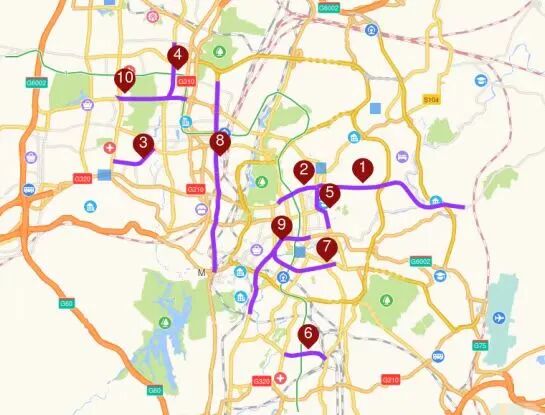去年中考期间贵阳市晚高峰拥堵路段示意图