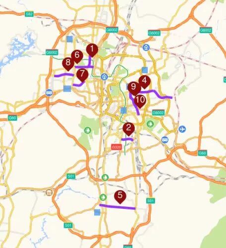 去年中考期间贵阳市早高峰拥堵路段示意图