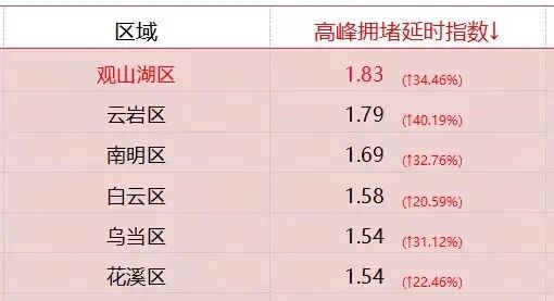 去年中考期间贵阳市晚高峰拥堵路段示数据