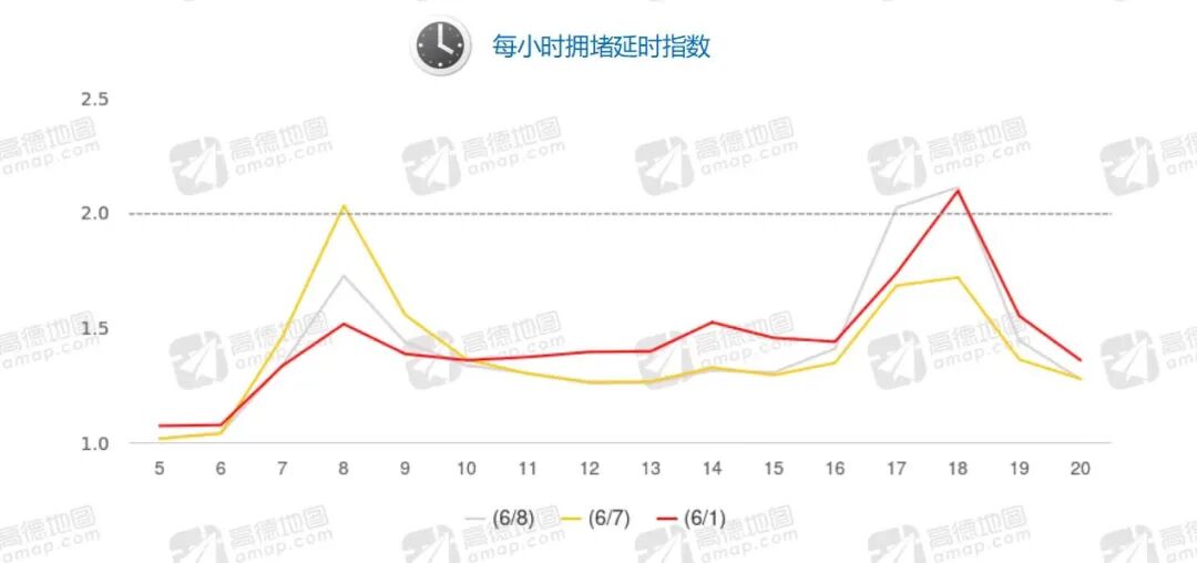 从去年同期互联网地图大数据来看,高考首日早高峰和尾日晚高峰的交通拥堵延时较高。其中,高考首日早高峰贵阳市拥堵延时在1.8左右,交通最拥堵时刻发生在上午8时,峰值拥堵延时指数达2.03。高考尾日晚高峰拥堵延时在2左右,交通最拥堵时刻发生在18时,峰值拥堵延时指数达2.11。