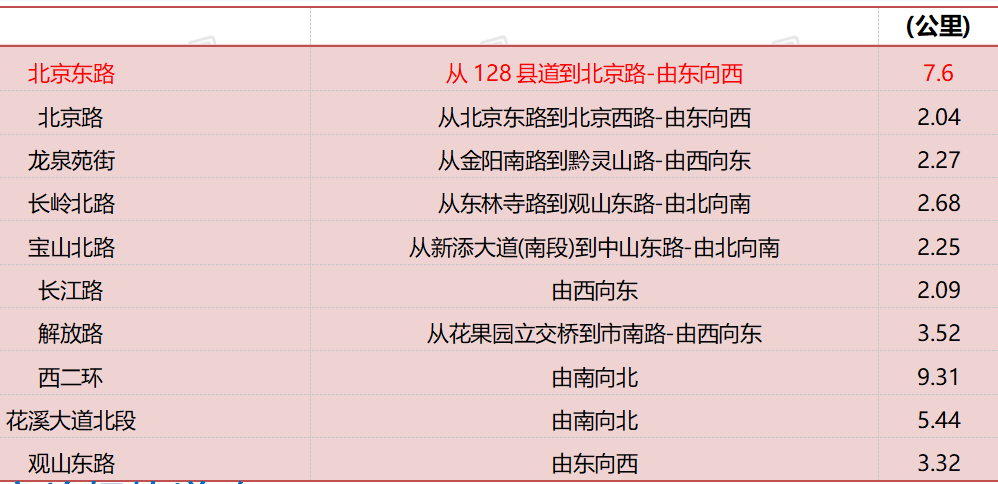 晚高峰拥堵较为严重的路段是长岭北路、宝山北路、观山东路、龙泉苑街等。
