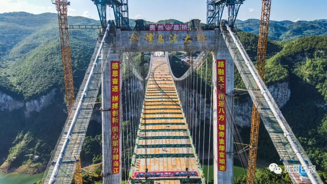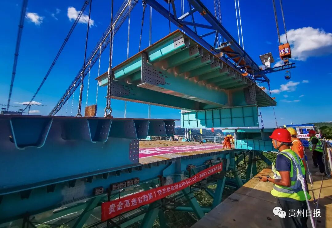 7月10日上午,随着最后一块钢桁梁吊装到位,贵阳经金沙至古蔺(贵金古)高速公路项目重要控制性工程——金烽乌江大桥顺利合龙,标志着贵金高速项目全线工程进入“加速模式”。