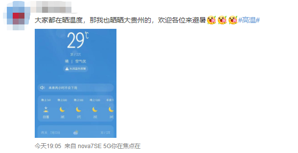 气象专家表示,在西太平洋副热带高压的控制下,四川、重庆、上海、浙江等地连日来出现高温天气,局地气温超过40℃。在大环境的背景下,贵阳午后确实偏热,但早晚依旧凉爽。