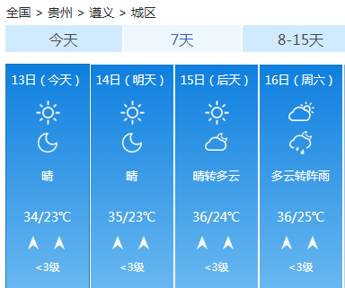 对比周边四川盆地到江南一带城市最高气温动辄35~38℃并直奔40℃的天气而言,贵州气温算是高温热浪中的一股“清流”了。值得期待的是,17至19日我省自西北向东南逐步将出现强降水天气,高温天气逐步减弱直至结束。