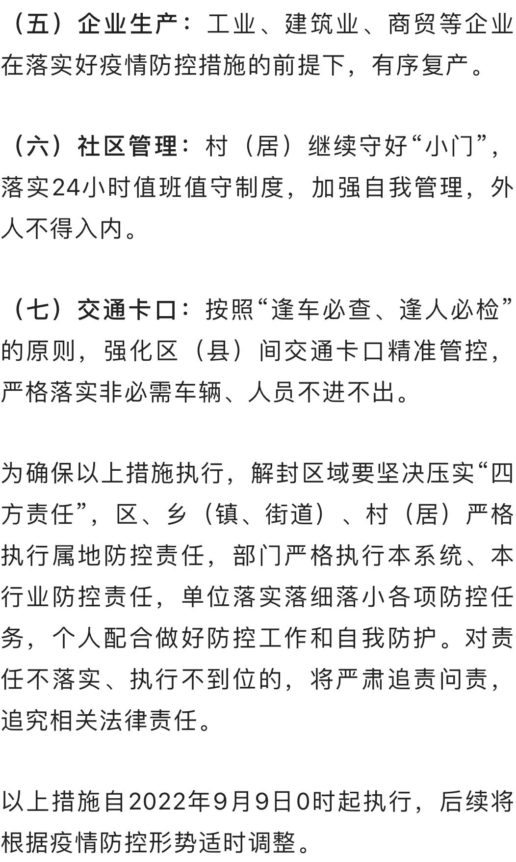 按照“卡口卡死、不出不进、区内活动、有序恢复”的原则,解除区域居民进出任何场所必须严格执行测温、戴口罩、“一扫三查”(扫场所码,查健康码、行程卡、48小时内核酸检测阴性证明)等防疫要求;解封后一周内,居民自行3次抗原检测并开展每日健康监测,如出现发热、乏力、头痛、咳嗽等新冠肺炎疑似症状,要做好个人防护,及时到定点医院就诊。