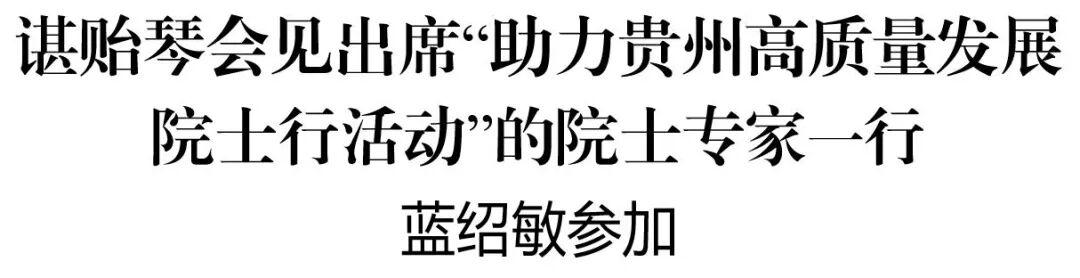 9月23日,省委书记、省人大常委会主任谌贻琴在贵阳会见出席“助力贵州高质量发展院士行活动”的院士专家一行。中国工程院院士、中国工程院主席团成员李培根等出席,中国工程院院士、南京航空航天大学校长单忠德代表院士专家发言。省委副书记蓝绍敏,省领导刘捷、陶长海、郭锡文参加会见。