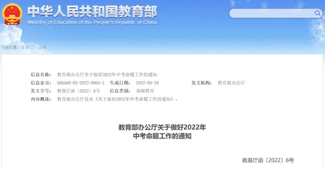 记者6日从教育部网站获悉,教育部办公厅日前发布《关于做好2022年中考命题工作的通知》,要求严格依据课程标准命题,坚决取消初中学业水平考试大纲或考试说明,不得超标命题和随意扩大、压减考试内容范围,严禁将高中课程内容、学科竞赛试题以及校外培训内容作为考试内容,确保依标命题、教考衔接。