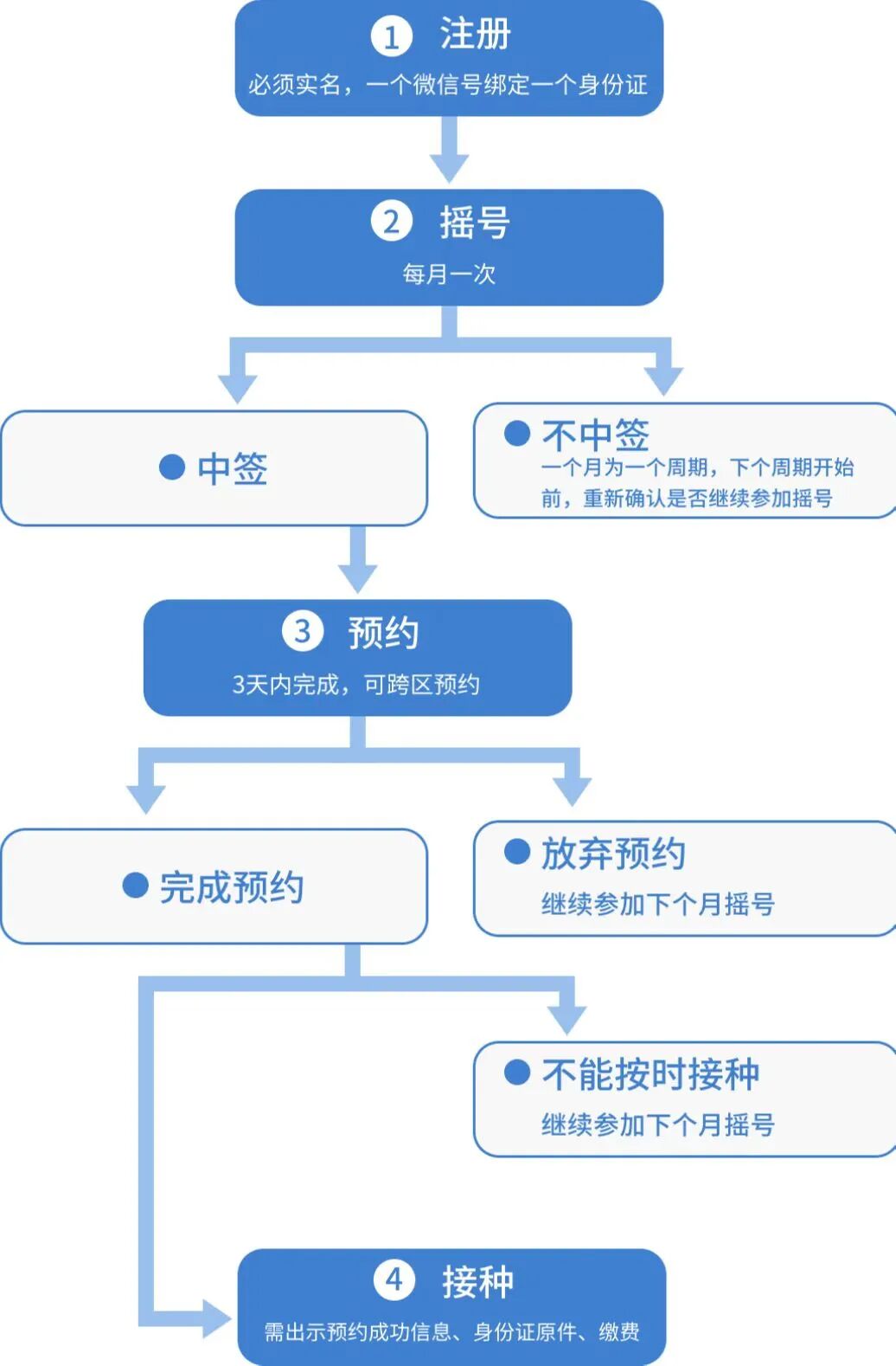 参与摇号人员确定中签后,可进入小程序界面查询并选择相关预防接种门诊预约接种,同时,中签者需在3个工作日内到指定的接种点进行确认并接种。如遇特殊情况不能接种的,需本人到接种现场确认后,与接种医师另外预约时间,最迟在2周内接种。不能在3个工作日内到现场确认、以及不能在规定时间接种的,中签号自动作废。同时需要注意的是,中签后接种时,受种者与注册人员必须是同一人。接种医师除现场核对身份证号、手机号、预约成功凭证外,受种者还需通过手机提供“贵州公安”或“支付宝”实名认证信息。