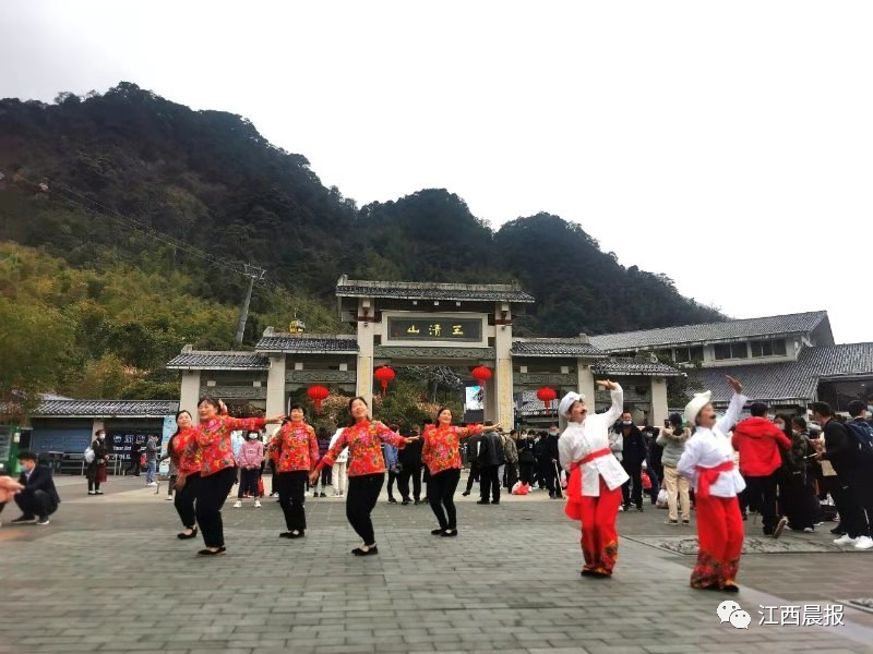 为了营造浓郁的节日氛围,活跃游客的精神文化生活,使广大游客在欢乐、喜庆、祥和的气氛中欢度节日,三清山景区不仅推出优惠的门票政策,而且还在金沙游人广场组织民俗表演,向来山游客展示三清山民俗风情。现场为游客朋友派送牛年大礼品,为来山游客提供春节乐趣!