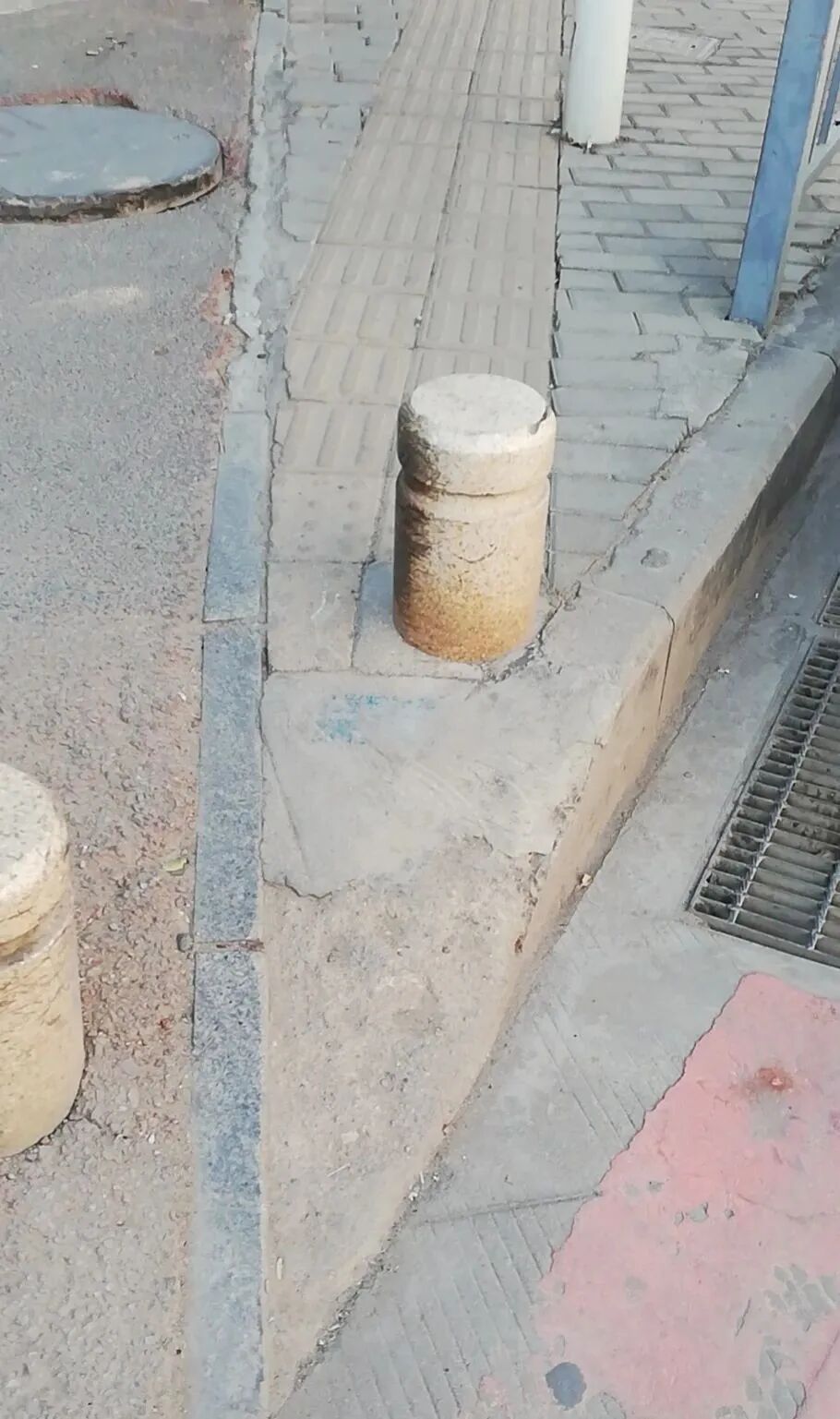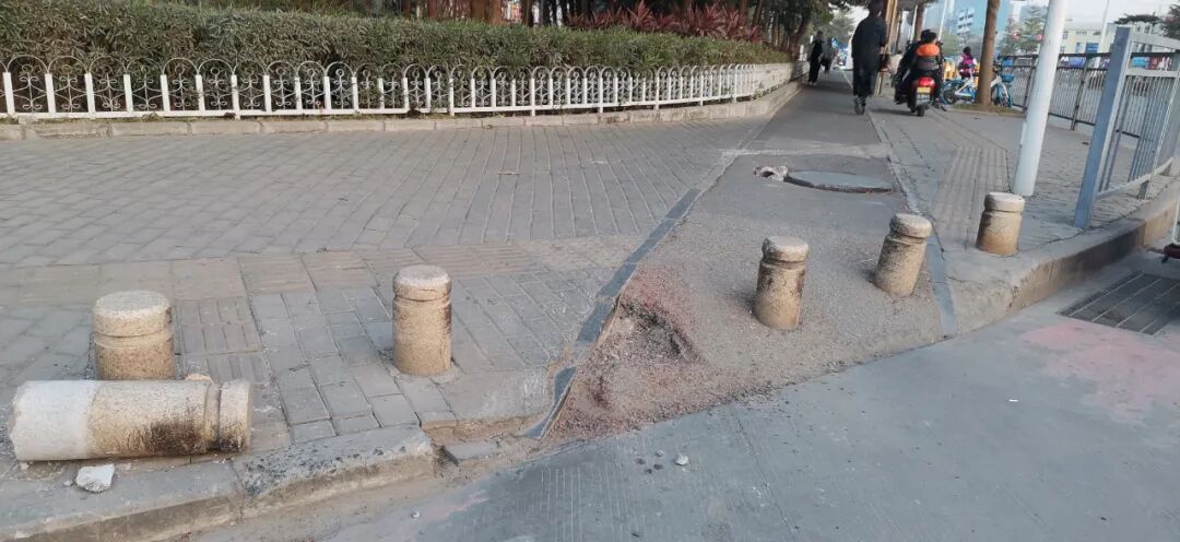 (图为新和大道小仙女轮椅摔到处,道路无障碍存在严重问题)