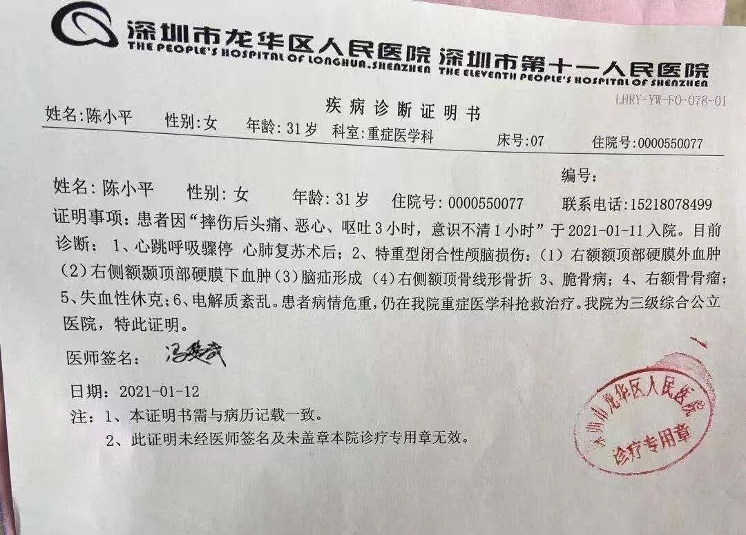 证明来源:深圳市龙华区人民医院