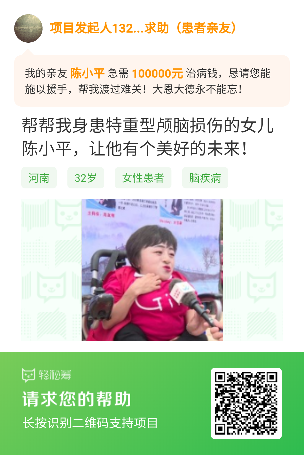 (图为筹款页面,爱心人士可扫码捐款)