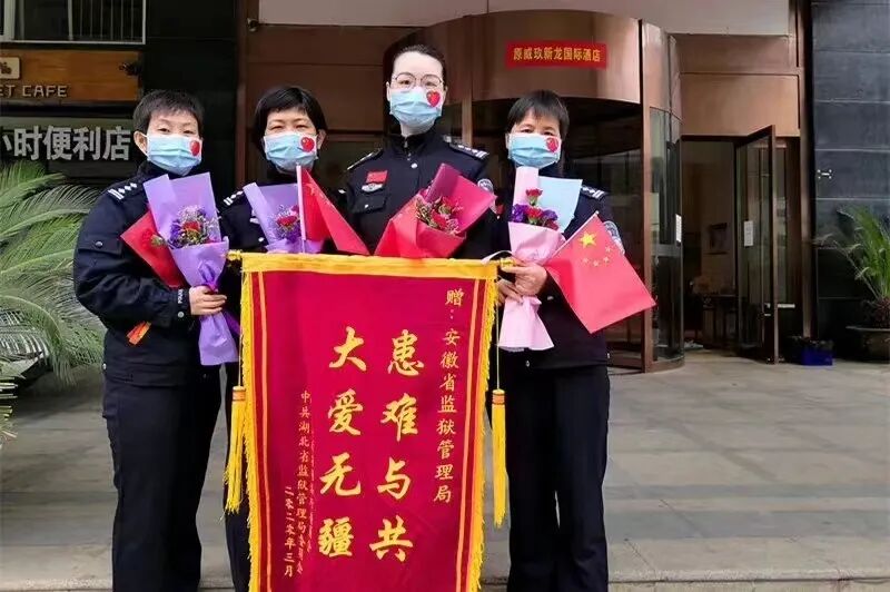 2020年初春,一场突如其来的疫情,打破了所有人的生活秩序,牵动着亿万民众的心绪。1月23日,武汉封城。2月8日,元宵节全国确诊37198例,湖北患者占72%。武汉告急,湖北告急。十万火急,兵贵神速。刚接到司法部支援武汉的命令,时年51岁的吴秋瑾第一时间主动请战,经过安徽省监狱管理局党委仔细筛选,从自愿报名的50余位女警中,挑选20人组成精锐力量,六小时内迅速集结出发,成为全国司法行政系统第一支驰援湖北的女子警队。刚抵武汉,星夜兼程的突击队员们还未放下行李,就接到“赴女子监狱汤逊湖临时关押点接收押犯”的任务。爱美的她们齐齐地剪了一个不来武汉一辈子都不会剪的“寸头”,穿上厚厚的防护服,奋战三个通宵,收押近千名服刑人员,顺利完成任务。此后的12天里,安徽女警队主动承包了所有的夜值班,每晚9小时,6个执勤点,6个楼层,每15分钟巡查一次。警花们严格值守,安徽姑娘无畏艰难。正是这份完美担当,警花们赢得了司法部领导和湖北同行的“皖美”赞誉,只不过此时,“完美”的“完”字已升级为安徽的简称“皖”。![]()