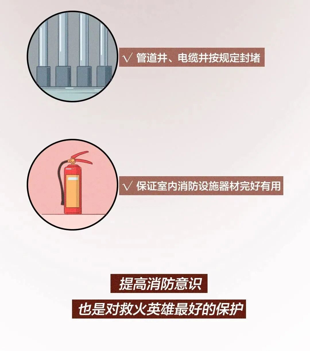 八、每个家庭都应制定消防安全计划,绘制逃生疏散路线图,及时检查、消除火灾隐患。