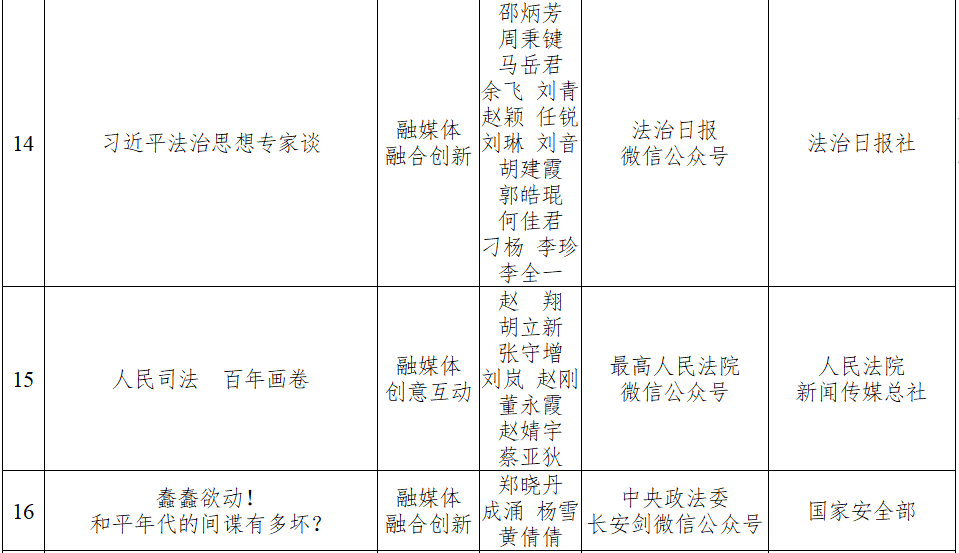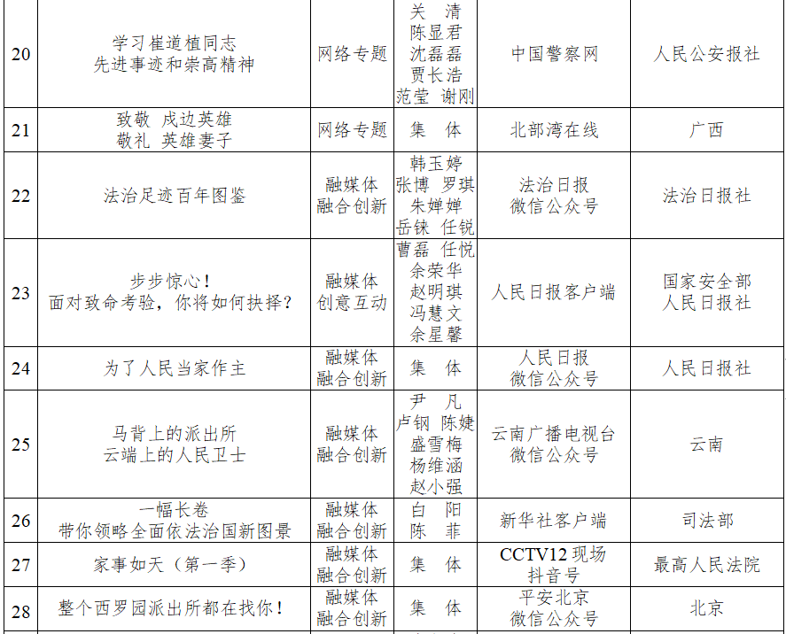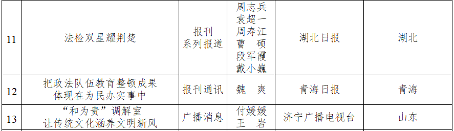 2021年度全国政法优秀新闻作品名单