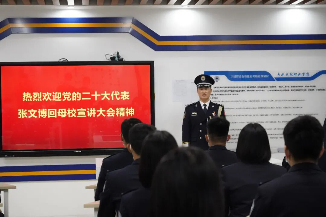 日前,党的二十大代表、白湖监狱管理分局民警张文博同志,应邀回到母校——安徽警官职业学院,参加学院团员青年学习党的二十大精神座谈会,与警院青年学生进行面对面互动交流,分享畅谈了自己学习宣传贯彻党的二十大精神的感悟和心得。