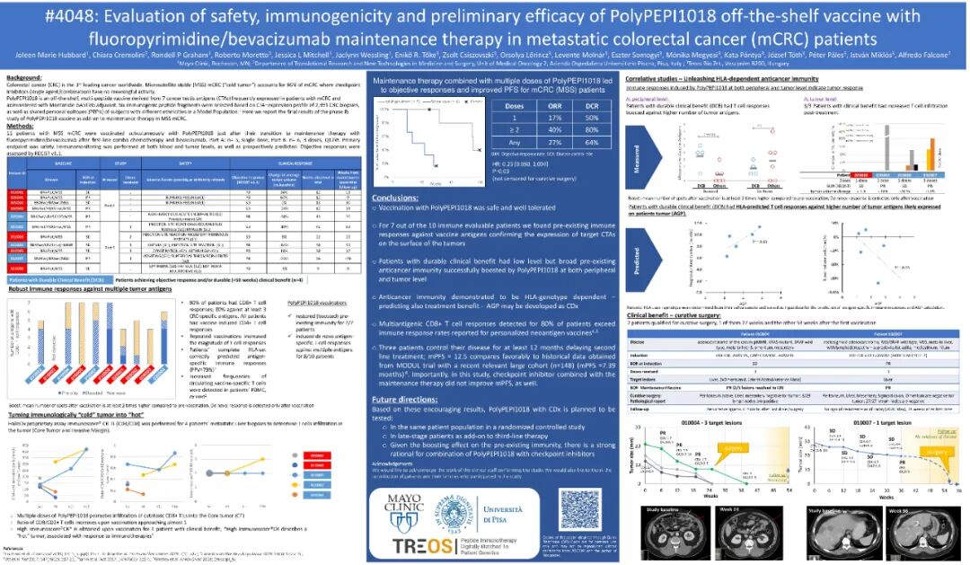 迄今,Vaccinogen 生物技术公司已完成了5 项有关OncoVAX® 对Ⅱ期结肠癌的安全性和有效性的临床试验,包括一项最佳剂量和方案的Ⅲa 期临床试验;就OncoVAX® 与FDA 已达成特殊评估协议(SPA)并被FDA 授予快速通道资格。目前该公司用OncoVAX® 治疗Ⅱ期结肠癌的关键Ⅲ b 期临床试验正在进行中,预计于2020 年7 月初步完成,于2022 年7 月全部完成,届时将提交上市申请,我们期待这款疫苗早日上市。惊艳ASCO!PolyPEPI1018疫苗安全有效