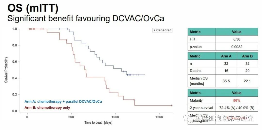 mOS(中位总生存期):接受DCVAC/LuCa联合化疗治疗的患者为15.5个月,仅接受化疗的患者为11.8个月;