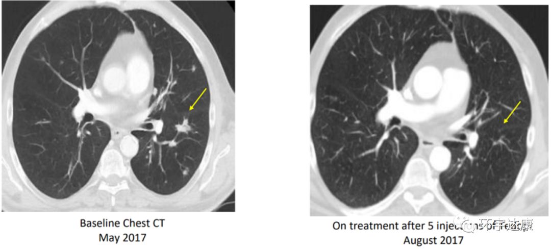 一位54岁的晚期肺癌患者在经过5次的新型肺癌疫苗注射后,肿瘤就迅速萎缩(从39毫米降至23毫米),截止报道时,生存期已经超过20.6个月,目前仍在随访中。原文链接:重磅!新型肺癌疫苗TedopiⅢ期试验数据公布,竟能破解PD-1耐药!