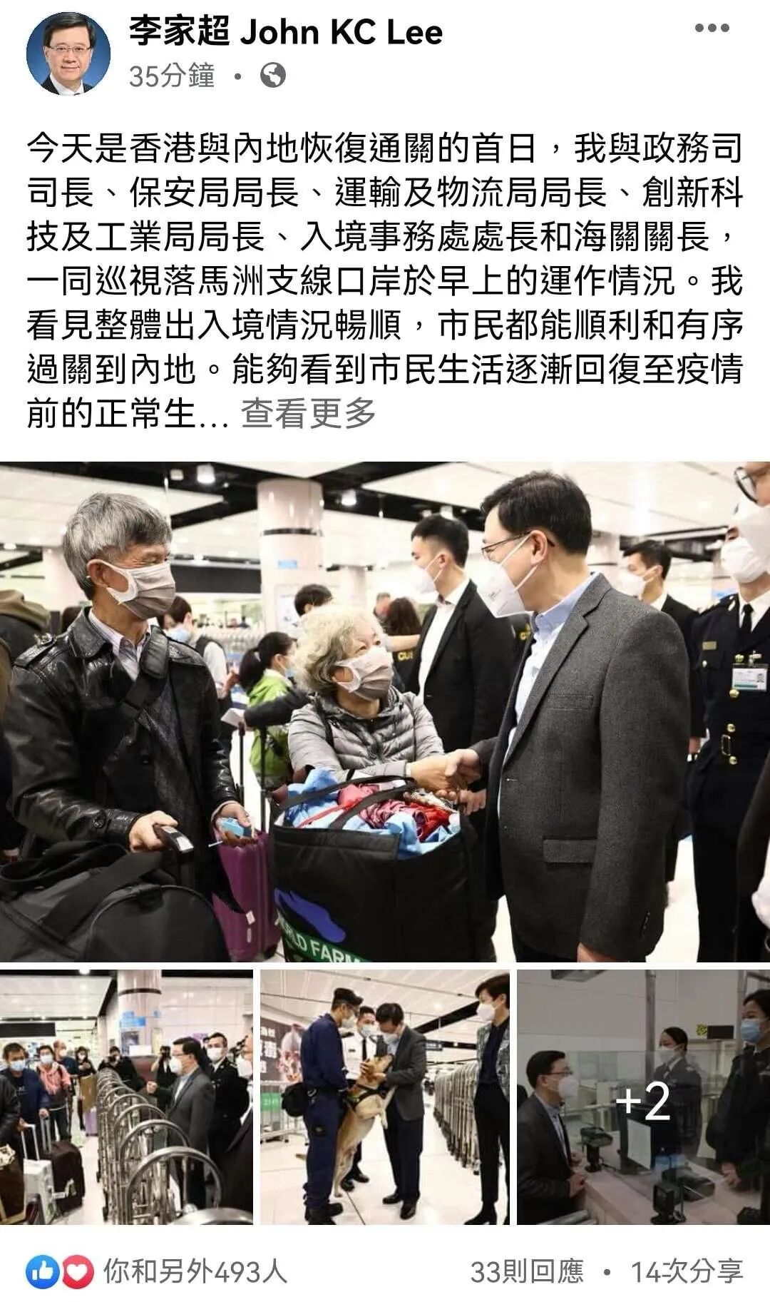 李家超对通关首日运作感到满意