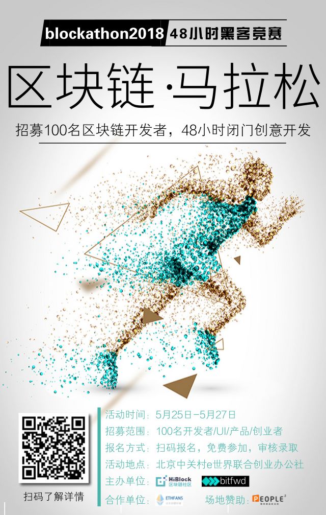 5月25-27日,Blockathon2018北京站,招募100名开发者一起挑战区块链开发。
