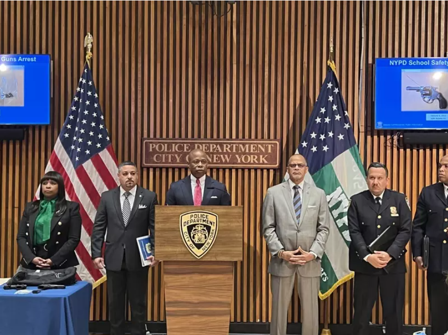 在纽约市,市长亚当斯25日与市教育总监班克斯(David Banks)在市警总局召开记者会,称已在布鲁克林一中学发现了一名13岁学生挟带枪枝上学。他说,“孩子屠杀孩子”的行为正在暗暗滋生。他们呼吁家长负起责任,检查孩子上学背包、房间,且严加沟通。