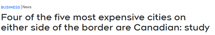 一项最新研究显示,就生活成本和收入而言,美、加两国最昂贵的5个城市中,竟然有4个位于加拿大。