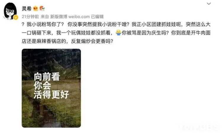 “你被骂是因为庆生吗?你到底是开牛肉面店还是麻辣香锅店的,反复煸炒会更香吗?”暗讽何超莲真的能炒作。
