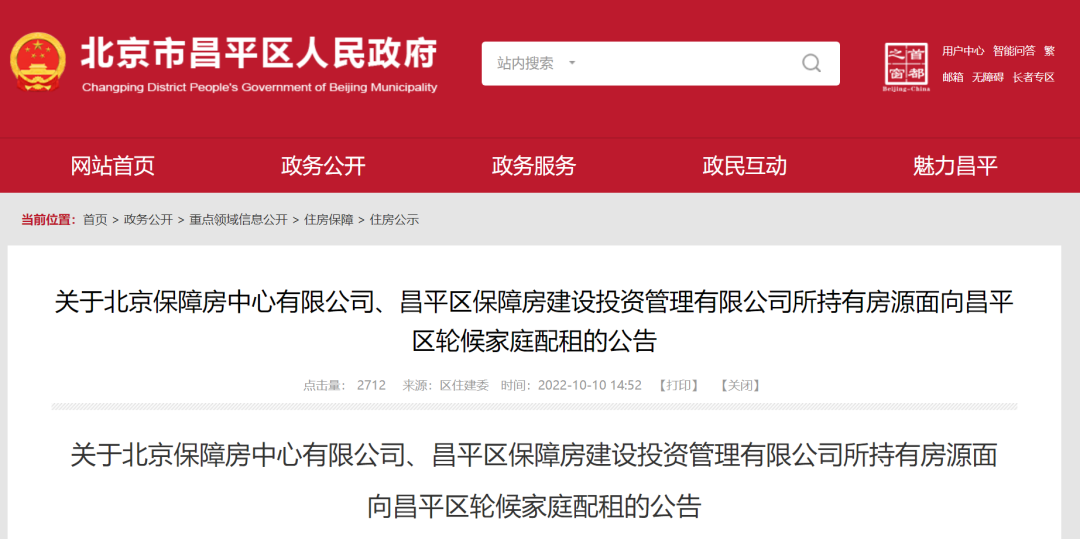 在配租对象方面,本次配租将采取网络登记的方式,面向昌平区2022年10月16日(含)前备案的具有公租房资格的家庭进行快速配租。