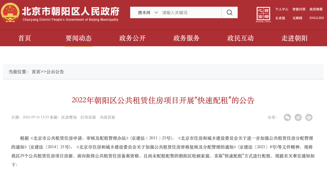 近日,朝阳、大兴、顺义三区接连发布公租房配租公告。其中,朝阳区此次配租房源涉及29个公租房项目,房源共计2565套。大兴区开展了面向城市低保等特殊困难家庭的专项配租,房源共计151套。通州区也将开展对上月配租后剩余房源的配租,共涉及房源1060套。