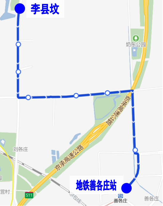调整后首末站:李县坟-地铁善各庄站