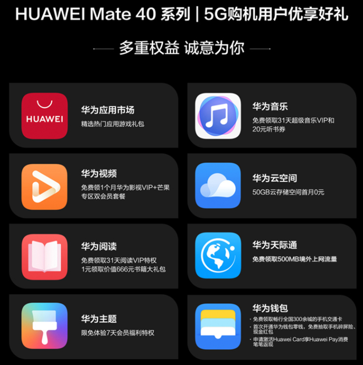 对了,不喜欢官方主题的人,可以到 “ 主题 App ” 里更换其他主题, Mate40 系列每个手机都配有一个软件体验大礼包,不用白不用。