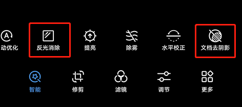 点击图片的 “ 编辑 ” , “ 反光去除 ” 可以去除玻璃上的简单反光、 “ 除文件阴影 ” 可以把文档上的灯光阴影去除,差评君都实际体验了一下,效果都不错,关键时刻还挺救急的。