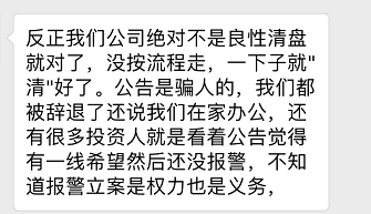 何况她的朋友明确告诉她,公司绝对不是良性清盘,黑幕很多,这个只是为了稳定投资者心情发布的东西。