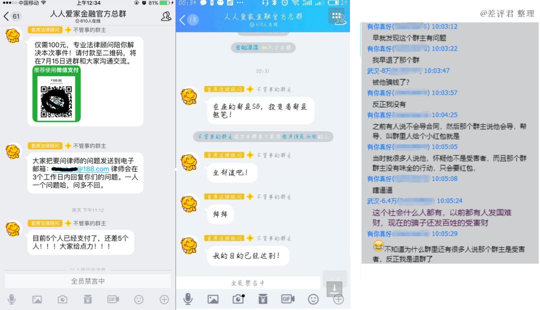 还有群主发动大家集资请律师,结果群主集完资,就将所有人禁言,嘲笑大家傻 X,并把所有人都 T 掉。