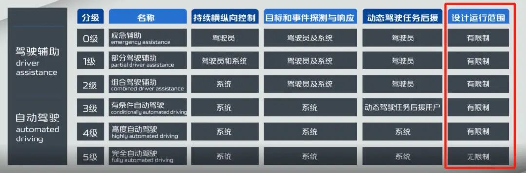 再者,国标分级还对自动驾驶车辆的运行范围进行了更明确的划分。