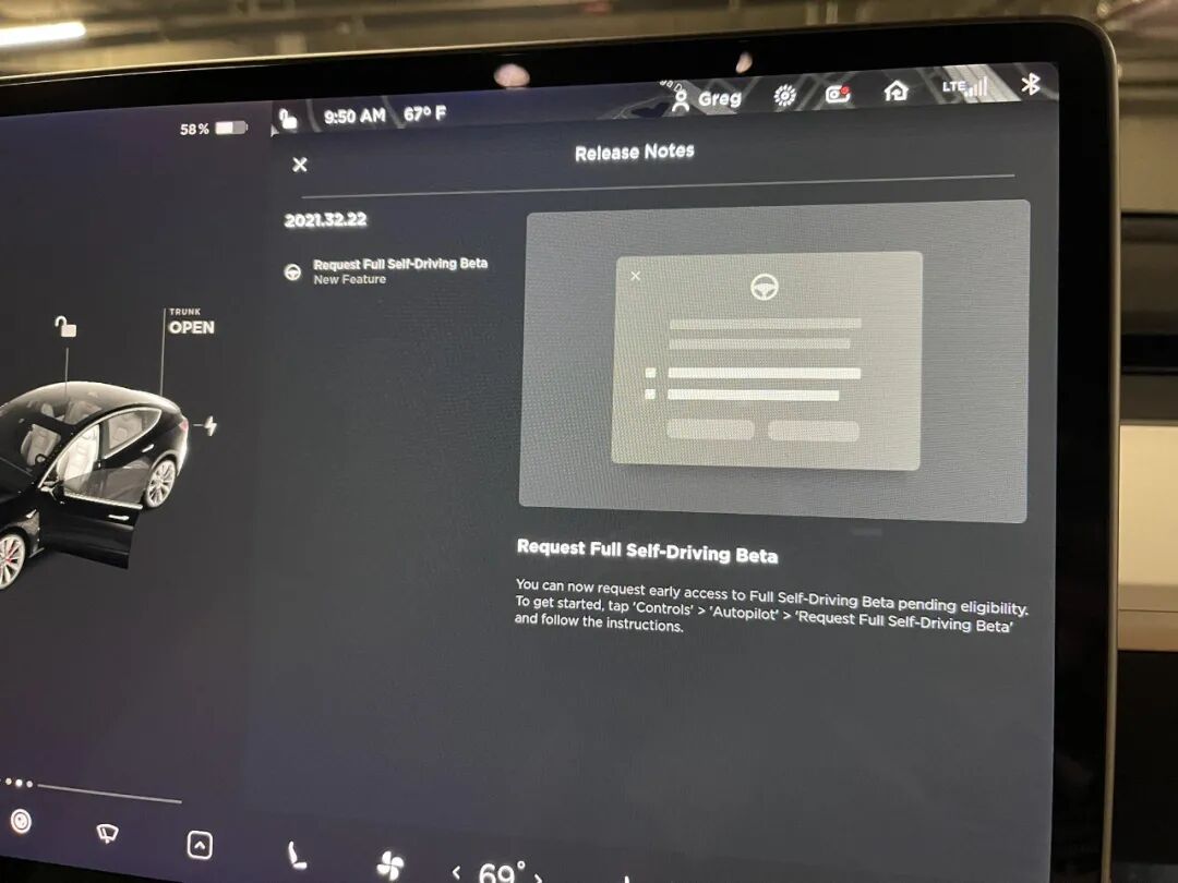 但其实这个 FSD 功能之前推出的时候是相当随意的,只要你买了 FSD 套件,收到测试通知就可以直接下载更新使用。