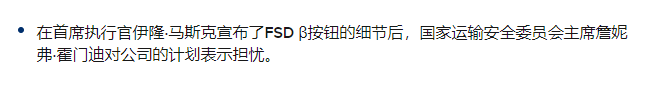 而美国国家运输安全委员主席霍门迪更是没给好脸,马斯克前脚刚宣布 FSD 的推送计划,霍门迪反手就来了个 “ 表示担忧 ” 。