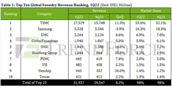 看着上头的台积电,羡慕的脸都要绿了。