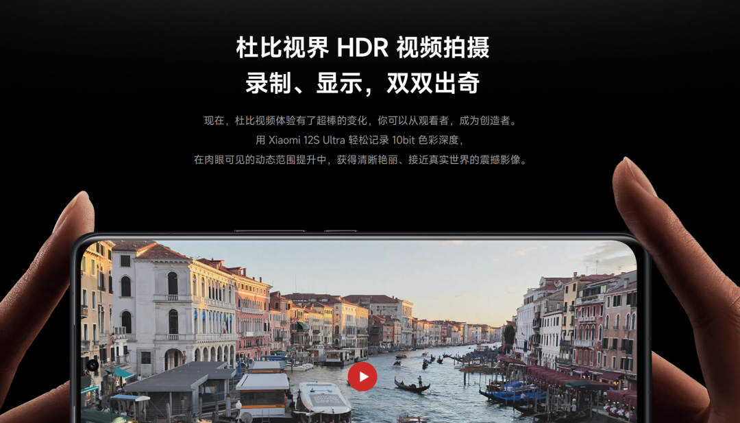 你看像骁龙 8+ Gen 1 所支持的视频编码格式跟 8 Gen 1 相同,所以我们可以看到搭载骁龙 8+ Gen 1 的小米 12S Ultra 能拍摄杜比视界 HDR 视频: