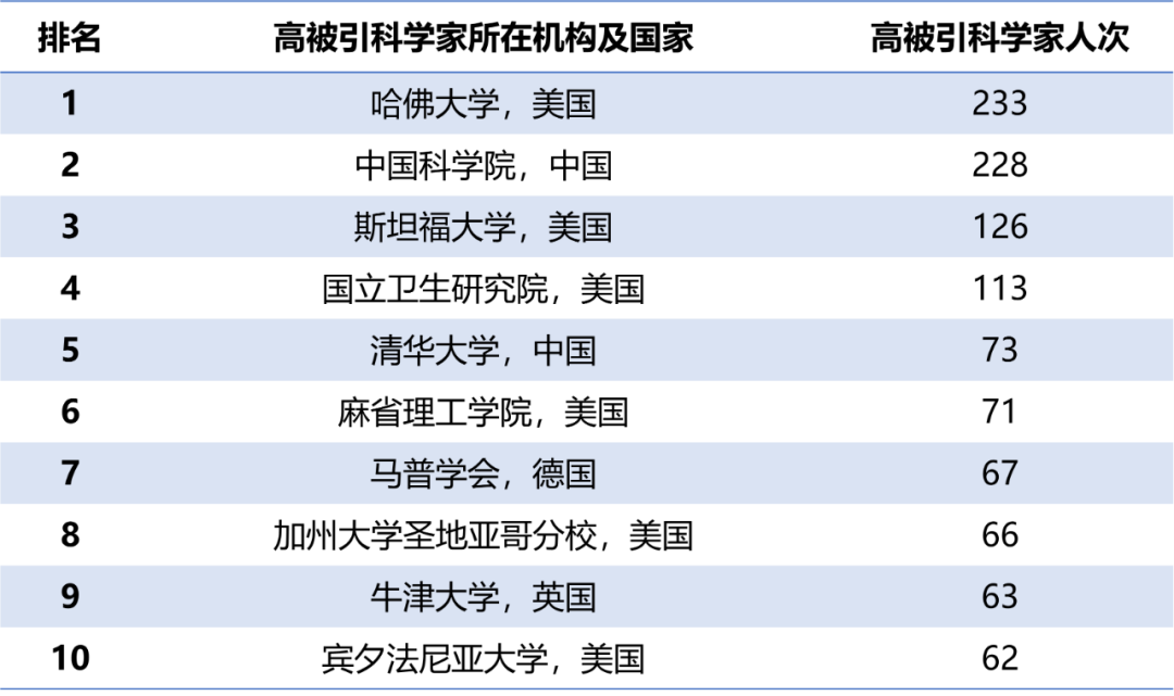2022 全球高被引科学家名单发布!中科院入选人次世界第二,几乎追平哈佛