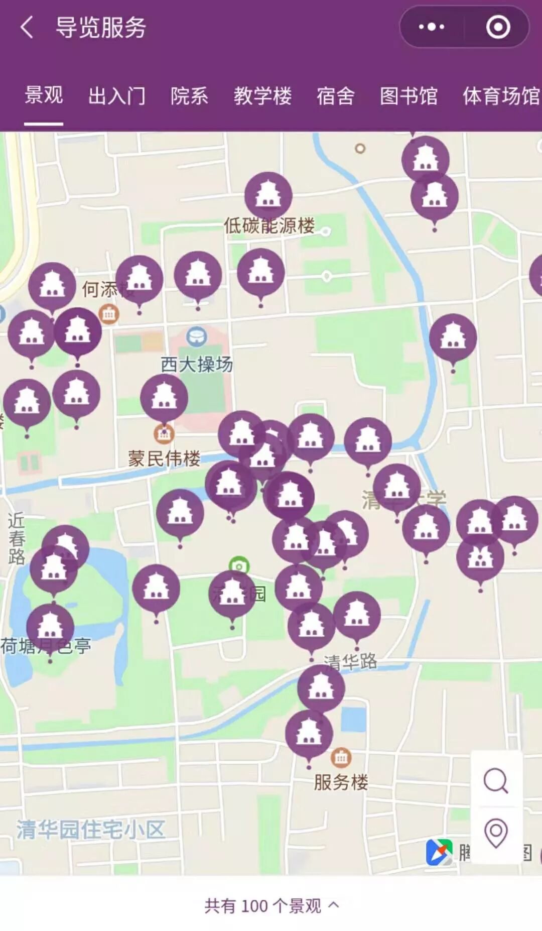 校园导航里展示了100个清华景观,还配有详细的图文介绍。