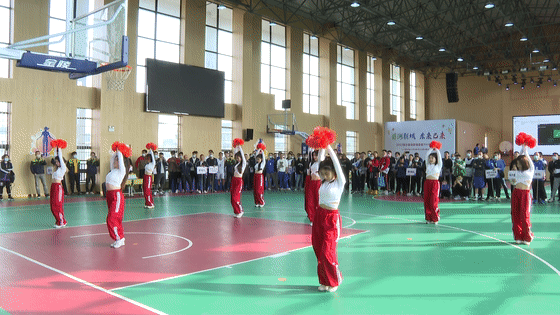 “加油!加油加油!”“球进了!”开幕式后,篮球赛正式开始,现场加油声、喝彩声此起彼伏,篮球场上参赛选手们手起足落,划出完美弧线,在篮球场上狂奔、飞跃、腾空,虽然天气转凉,但比赛现场火热十足。