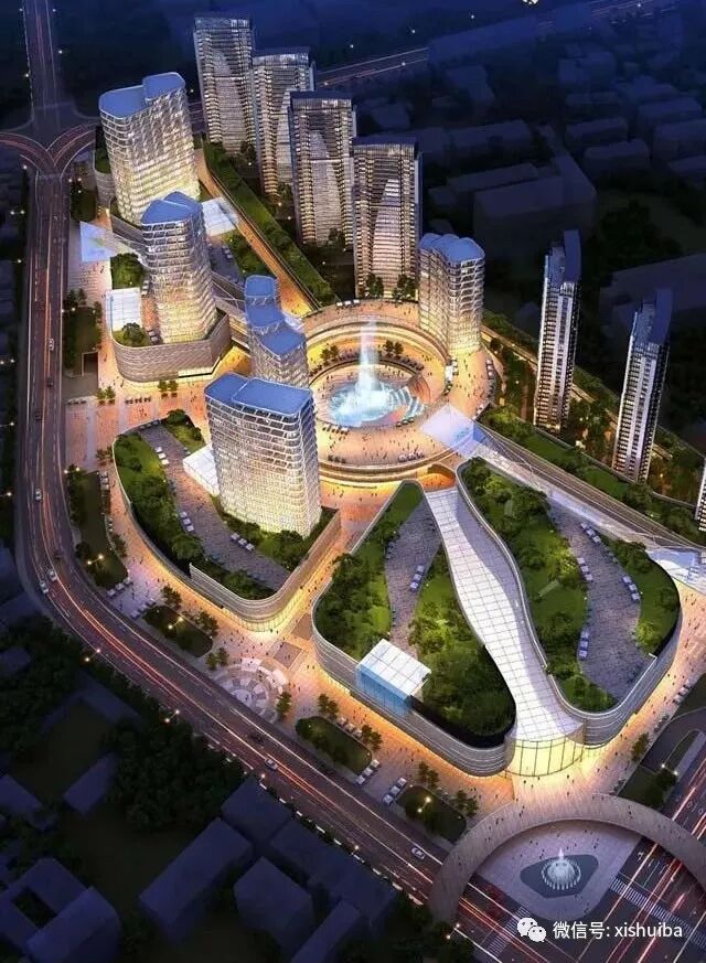 规划中有环形天桥,购物中心,公寓,步行街,住宅,下池 广场,商业街....