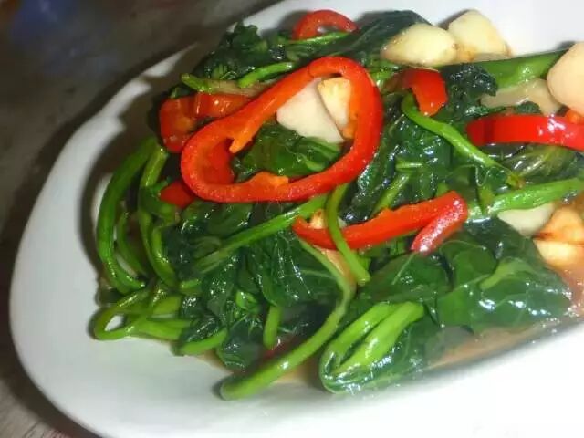 有的人喜欢有口径的,就专挑苕藤管吃,年长的吃不动,择菜时把过老菜杆部分的丢弃不要。也有不分管和叶的,炒的时候把菜杆和叶分一下,后下菜叶部分是为了不致于把菜叶炒得太焉影响口感。