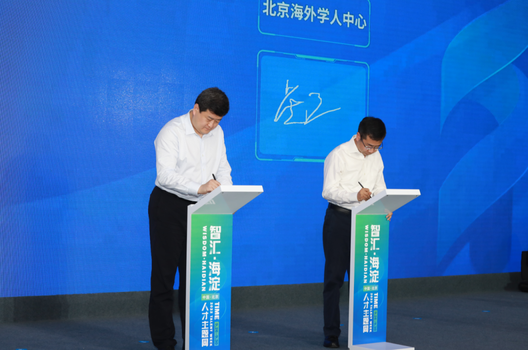 ▲中关村国际人才服务功能区暨海淀区海外人才创新创业服务中心签约仪式